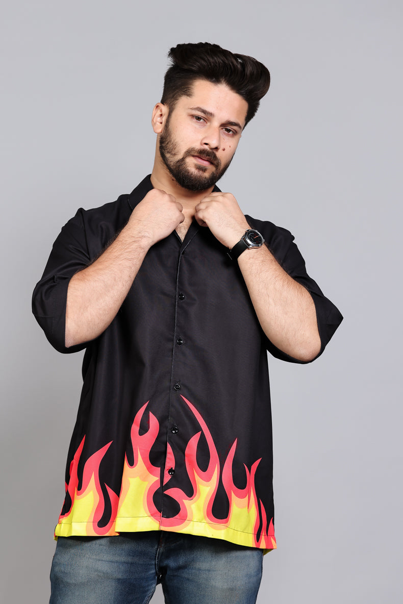 Oversized "Blaze" Digital Print Men's Casual Shirt - Flame Graphic