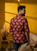 Men's Jaipuri Sanganeri Elephant Print Shirt - Maroon & Red