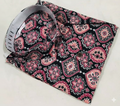 Vibrant & Bold Design: The striking contrast of the vivid pink, maroon, and peach motifs against a deep black background creates a truly captivating and unique aesthetic.