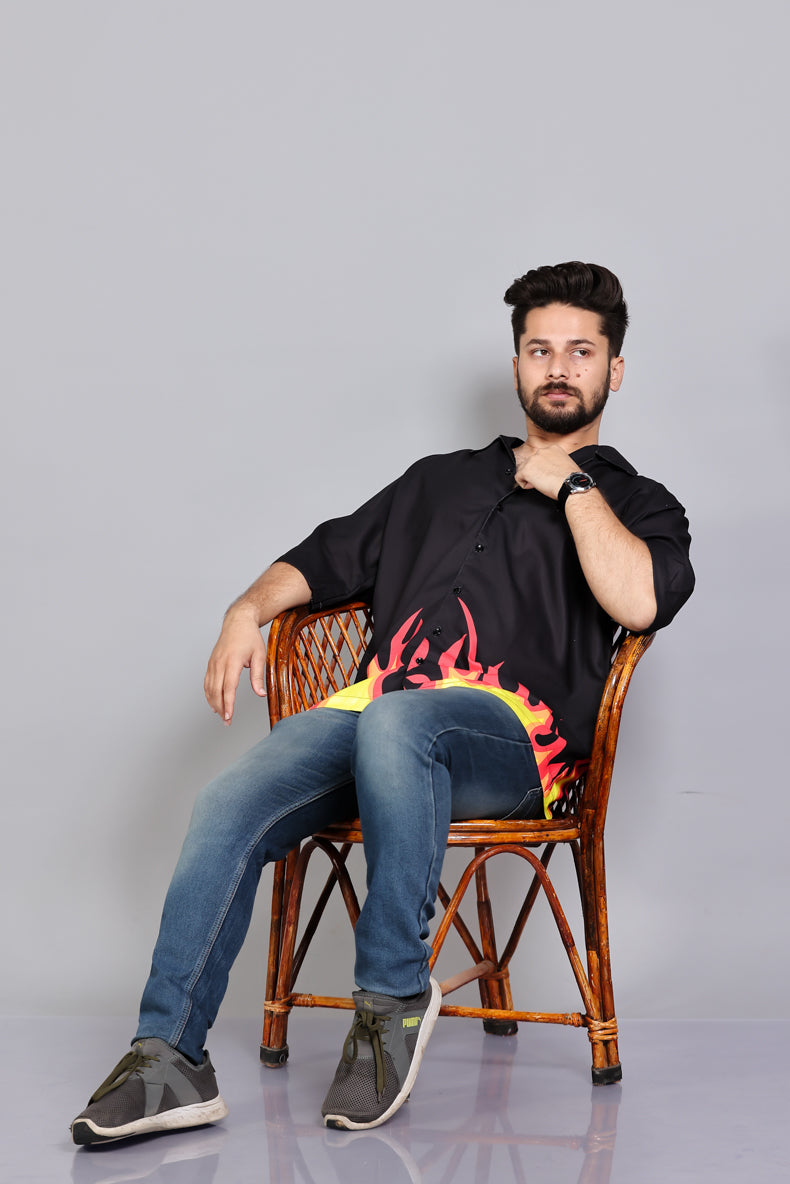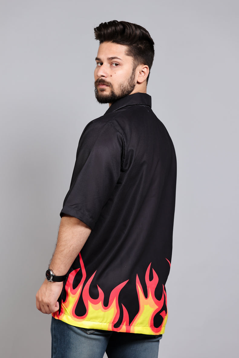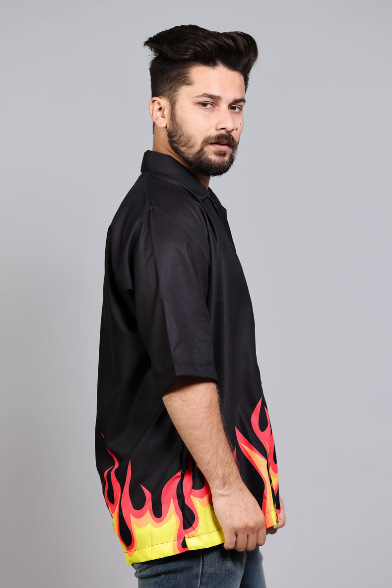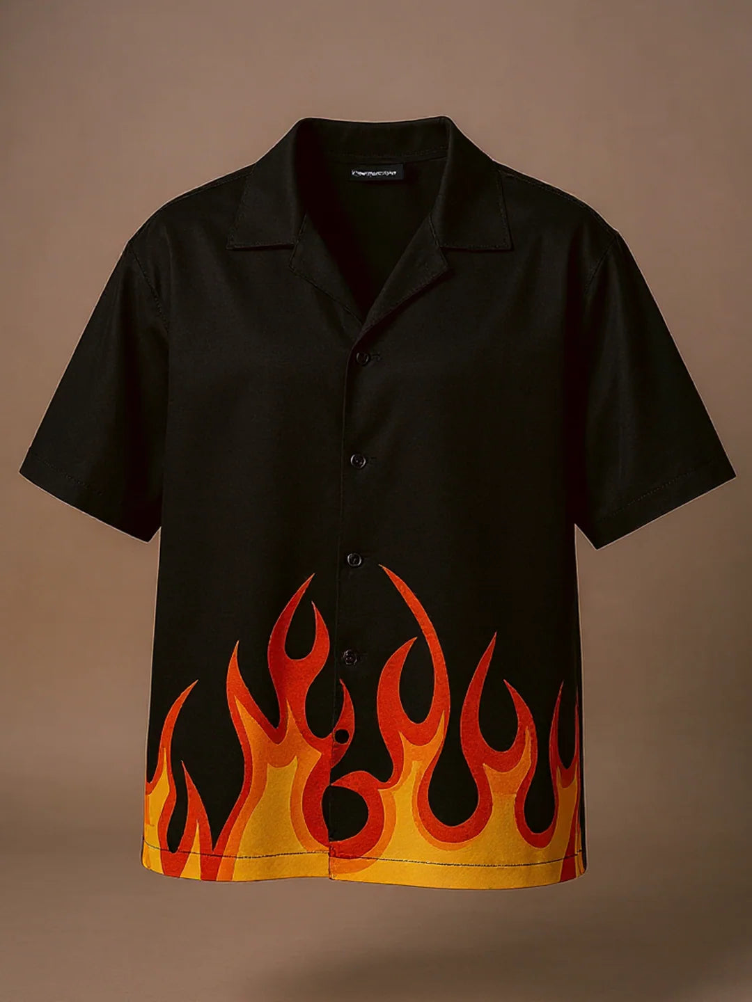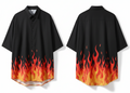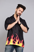 Oversized "Blaze" Digital Print Men's Casual Shirt - Flame Graphic