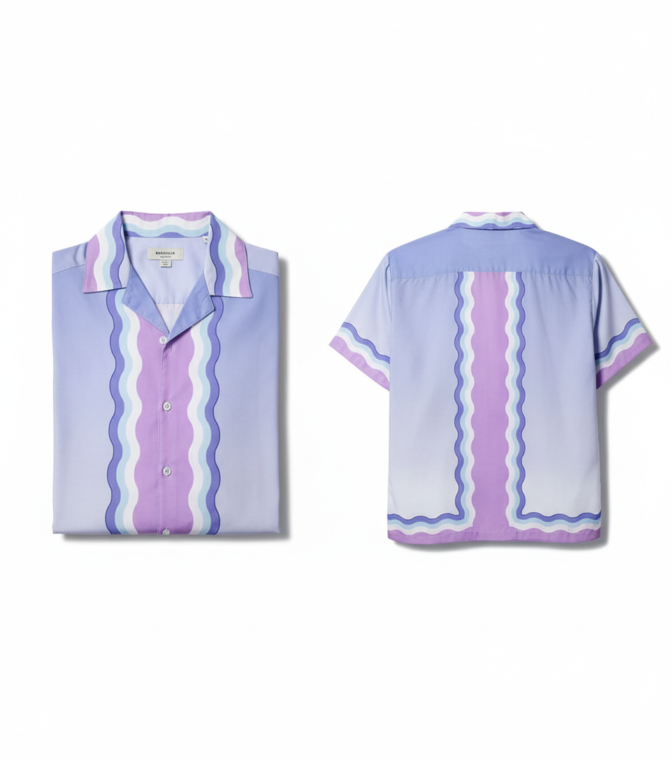 Dive into style with our Oversized Digital Print "Ocean Wave Ombre" Men's Casual Shirt. This unique piece features a striking design of undulating waves in a beautiful pastel palette of lavender, purple, and aqua, seamlessly blended to create a soft ombre effect. The digital print ensures crisp details and vibrant colors that make a statement without being overpowering. Crafted with an oversized fit, it offers maximum comfort and a modern, relaxed silhouette, perfect for a laid-back yet stylish look. Made from lightweight, breathable fabric, this shirt is ideal for summer days, beach outings, or adding a touch of artistic flair to your casual wardrobe.
