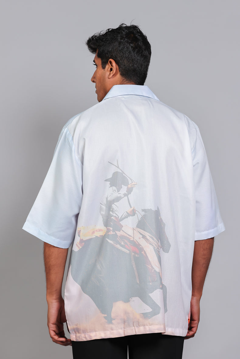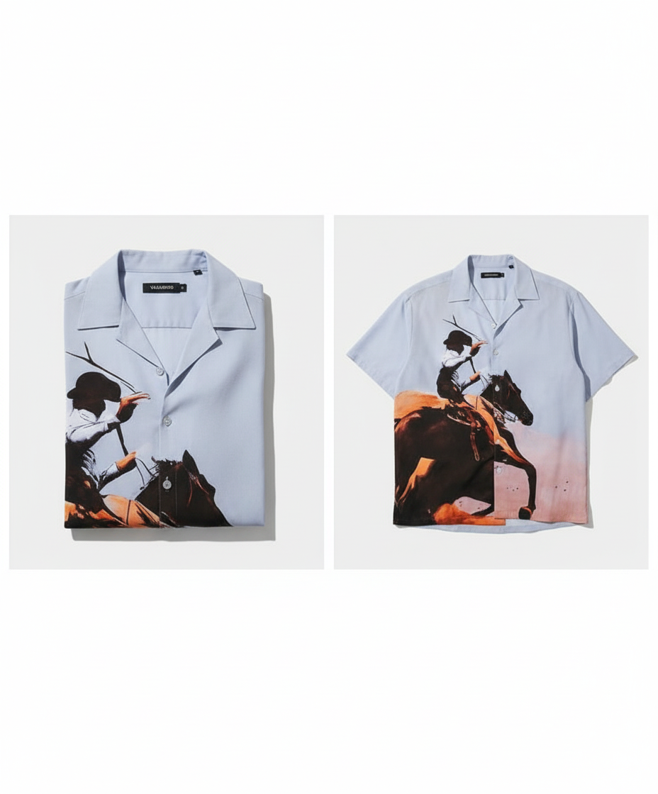Oversized Digital Print "Polo Rider Sunset" Men's Casual Shirt - Artistic Graphic