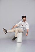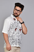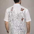 Product Overview :Elevate your seasonal wardrobe with this sophisticated short-sleeve shirt, blending modern minimalism with artisanal charm. Featuring intricate black botanical line-art and tactile embroidered accents, this piece is designed for the man who values understated luxury and a refined, artistic aesthetic.