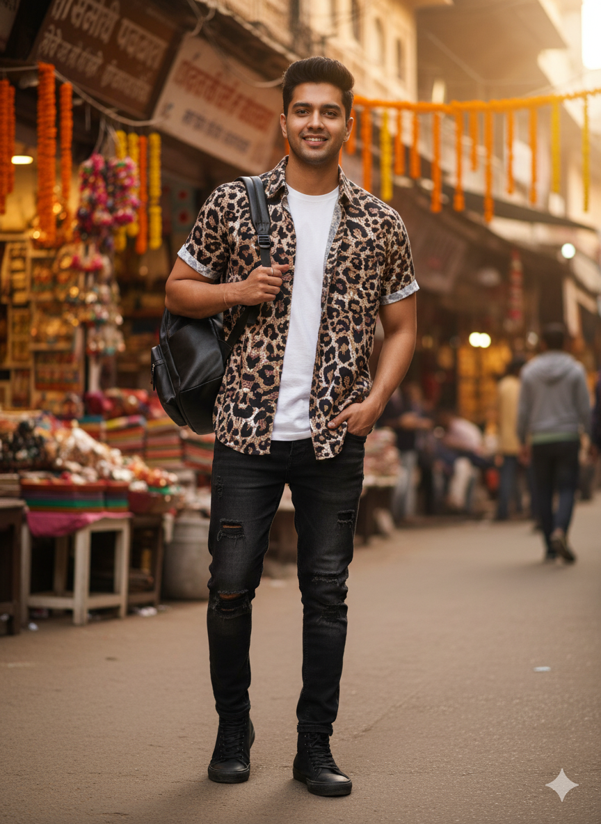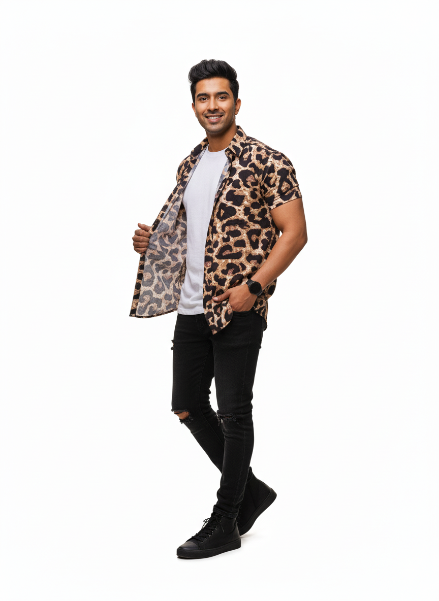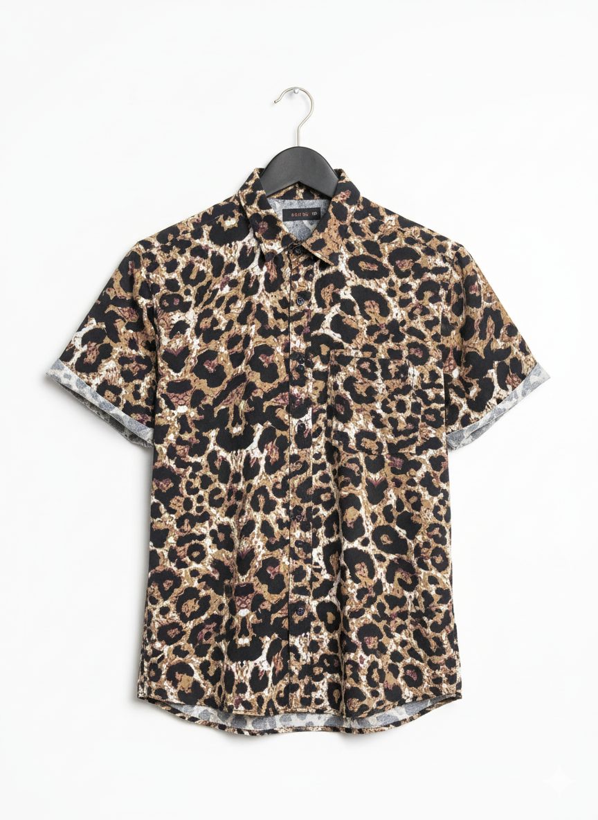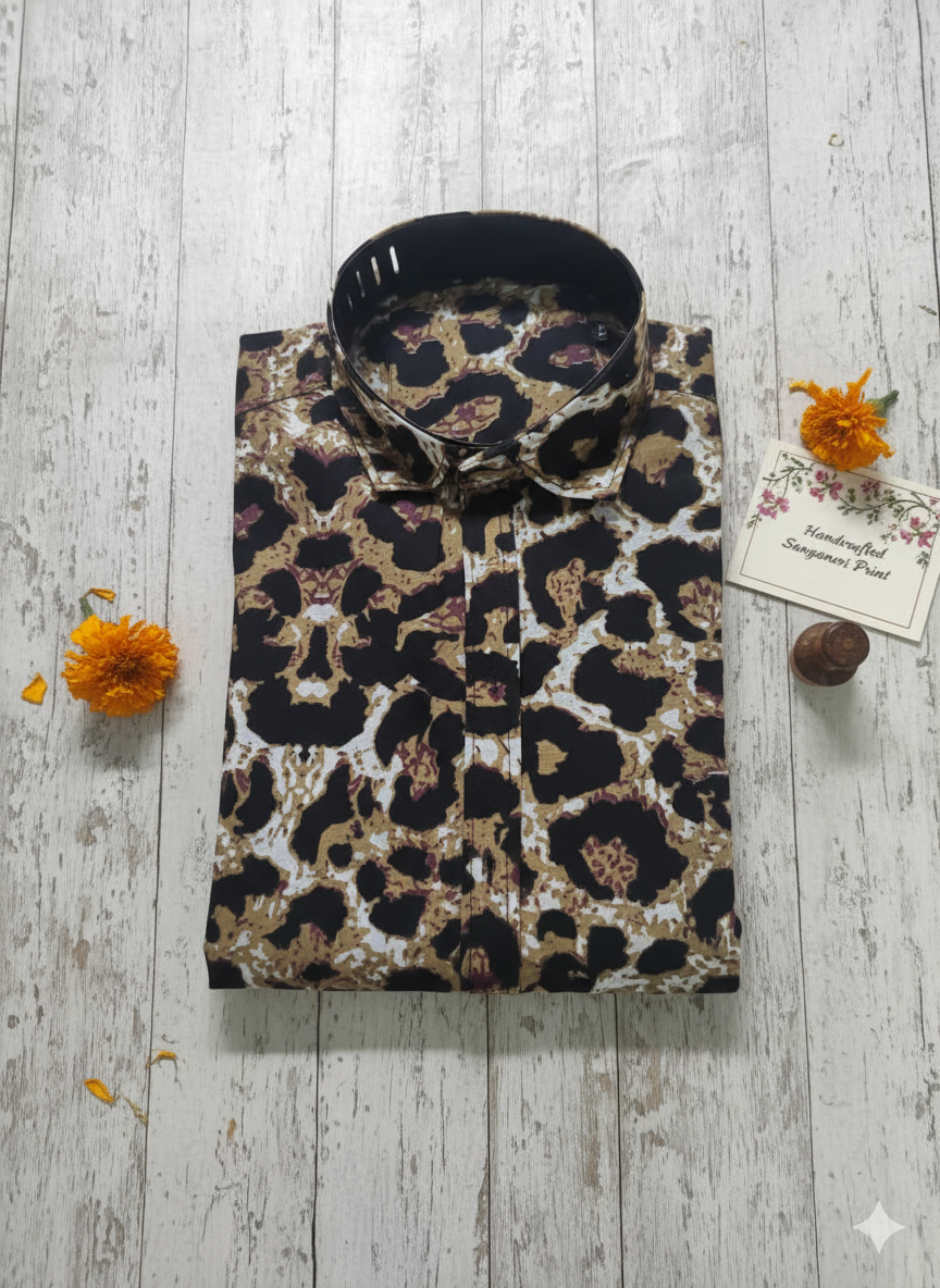 Unique Leopard Motif Cotton Shirt - Hand Block Inspired